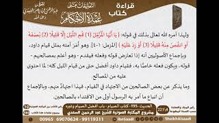 بسم الله الرحمن يا ايها المزمل قم الليل الا قليلا نصفه او انقص منه قليلا او زد عليه وهو امر امته بمثل قيام داود وباجماع الاصوليين انه اذا تعارض قوله وفعله - 00:03:03ضَ