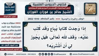[1916 -2802] هل يجوز شراء كتاب عليه ختم "وقف لله" ؟ - الشيخ صالح الفوزان
