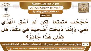 فضيلة الشيخ وفقكم الله يقول حججت متمتعا لكن لم اسق الهدي معي وانما ذبحت اضحية في مكة. هل فعلي هذا جائز؟ هل متمتع؟ يقول حججت متمتعا. مم. لكن لم اسق الهدي - 00:00:00ضَ