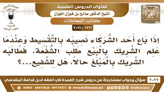 فضيلة الشيخ وفقكم الله يقول اذا باع احد الشركاء نصيبه بالتقسيط وعندما علم الشريك بالبيع طلب الشفعة فطالبه الشريك بالمبلغ حالا هل للشريك؟ لا لا كما استقر عليه العقد حالا او مؤجلا كما استقر عليه العقد - 00:00:00ضَ