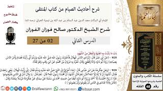 بسم الله الرحمن الرحيم المكتبة الصوتية لمعالي الشيخ الدكتور صالح بن فوزان الفوزان. حلقات تبث في اذاعة القرآن الكريم. شرح احاديث الصيام من كتاب المنتقى. الدرس الثاني. بسم الله الرحمن الرحيم الحمد لله رب العالمين. والصلاة والسلام على - 00:00:00ضَ