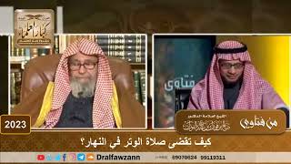 ليست على شكل الوتر وانما تقضيها مشفوعة فاذا كنت توتر بثلاث فانك تجعلها اربع بسلامين اذا كنت توتر بخمس تجعلها ستا بثلاث تسليمات وهكذا. نعم. ايه اذا كان خمسة خليها ستة تسليمات كيف يا شيخ - 00:00:43ضَ