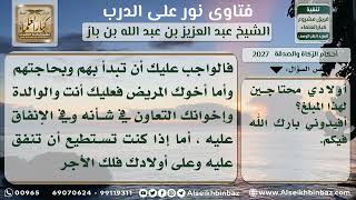 فاذا كنت تستطيع الانفاق على اخيك المريظ وعلى اولادك فافعل وابشر بالخير ولو تأخر اخوانك عن مساعدتك ولو تأخر تأخر الام كذلك يكون لك الاجر كله وانت على خير عظيم - 00:01:30ضَ