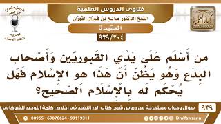 فضيلة الشيخ وفقكم الله يقول من اسلم على يد القبوريين واصحاب البدع وهو يظن ان هذا هو الاسلام فهل يحكم له بالاسلام الصحيح؟ لا. هو المقصر. لماذا لم يذهب الى اهل العلم يسألهم عن الاسلام الصحيح؟ لماذا - 00:00:00ضَ
