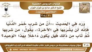 فهل يكون داخلا في هذا الوعيد اذا تاب تاب الله عليه اذا تاب الله عليه شرب من خمر الجنة. هذا بالذي لم يتب لان شارب الخمر لا يكفر قد يدخل الجنة - 00:00:18ضَ