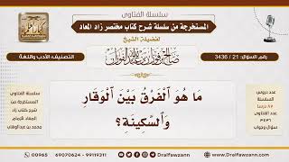 احسن الله اليكم صاحب الفضيلة وهذا السائل يقول ما هو الفرق بين الوقار والسكينة؟ السكينة ان لا يكون هناك حركة وجلبة وتشويش اما الوقار فهو ان يكون الانسان يكون عليه الهيبة - 00:00:00ضَ