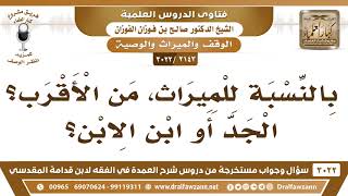 [2143 -3022] بالنسبة للميراث، من الأقرب: الجد أو ابن الابن؟ - الشيخ صالح الفوزان