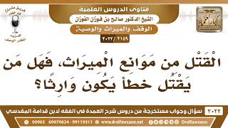 [2149 -3022] هل من يقتل خطأً يكون وارثا؟ - الشيخ صالح الفوزان