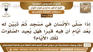 فضيلة الشيخ وفقكم الله يقول السائل اذا صلى الانسان في مسجد ثم تبين له بعد ايام ان فيه قبرا ان فيه قبرا فهل يعيد صلوات تلك الايام؟ ان فيه قبرا يعني في المسجد نعم - 00:00:00ضَ