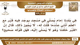 يقول فضيلة الشيخ وفقكم الله يقول السائل في بلدنا امام يصلي في مسجد يوجد فيه قبر مع العلم انني عندما يقول في بلدنا امام يوجد او يصلي في مسجد يوجد فيه قبر - 00:00:00ضَ