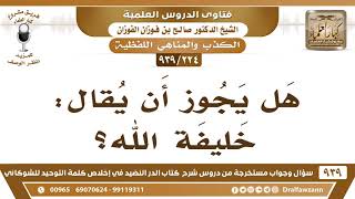 [224 -939] هل يجوز أن يقال: خليفة الله؟ - الشيخ صالح الفوزان