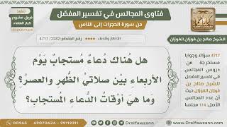 [2282- 4717] هل ثبت أن بين الظهر والعصر يوم الأربعاء وقت إجابة للدعاء؟ - الشيخ صالح الفوزان