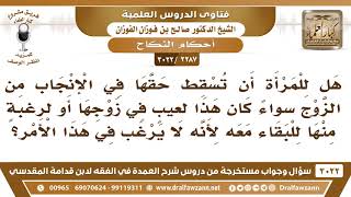 فضيلة الشيخ وفقكم الله يقول السائل هل للمرأة ان تسقط حقها في الانجاب من الزوج سواء كان هذا بعيب في زوجها او لرغبة منها للبقاء معه لانه لا يرغب في هذا الامر - 00:00:00ضَ