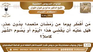 فضيلة الشيخ وفقكم الله يقول السائل من افطر يوما من رمضان متعمدا بدون عذر مم من افطر من رمضان متعمدا بدون عذر. فهل عليه ان يقضي هذا اليوم او يصوم الشهر كاملا؟ لا عليه - 00:00:00ضَ