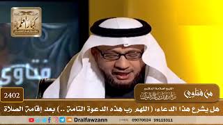 2402 - هل يشرع هذا الدعاء: (اللهم رب هذه الدعوة التامة ..) بعد إقامة الصلاة - الشيخ صالح الفوزان