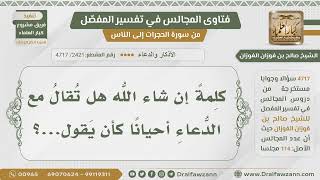 [2421- 4717] هل يصح أن يقال إن شاء الله في الدعاء؟ - الشيخ صالح الفوزان
