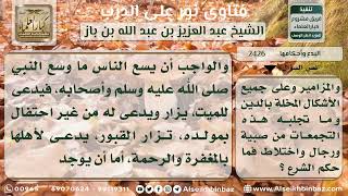 فهي من البدع وما يقع فيها من الالات الملاهي والطفول واختلاط الرجال بالنساء منكر اخر منكرات اخرى كلها يجب منعها والواجب ان يسع الناس من وسع النبي صلى الله عليه وسلم واصحابه - 00:00:52ضَ