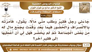 [2450 -3022] جمعت مالا لفقير فلم يحضر فهل لي أن أعطيها إلى فقيرٍ آخر؟ - الشيخ صالح الفوزان