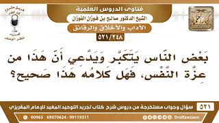 [248 -521] بعض الناس يتكبر ويدعي أن هذا من عزة النفس؟ - الشيخ صالح الفوزان