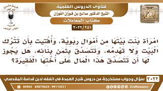 [251 -3022] امرأة بنت بيتها من الربا وقد أفتيت بأن تتصدق بثمن بنائه، فهل تتصدق به على أختها الفقيرة؟