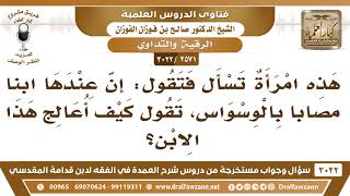 فضيلة الشيخ وفقكم الله يقول السائل او هذه امرأة تسأل فتقول ان عندها ابنا مصابا بالوسواس تقول كيف اعالج هذا الابن الوسواس ان كان وسواس يعالج بالاقراءة عليه تقرأ عليه من سورة الاخلاص والمعوذتين - 00:00:00ضَ