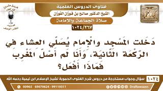 [267 -1024] دخلت المسجد ولم أصل المغرب، فوجدت الإمام يصلي العشاء في الركعة الثانية، فماذا أفعل؟