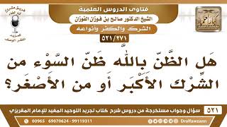 [271 -521] هل الظن بالله ظن السوء من الشرك الأكبر أو من الأصغر؟ - الشيخ صالح الفوزان