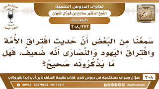 [272 -308] سمعنا من يقول إن حديث افتراق الأمة واليهود والنصارى ضعيف، فهل ما يذكرونه صحيح؟