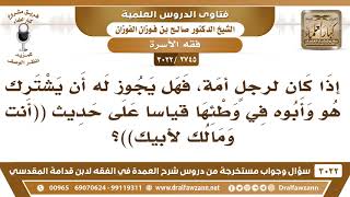 فضيلة الشيخ وفقكم الله يقول اذا كان لرجل امة فهل يجوز له ان يشترك هو وابوه في وطئها قياسا على قول على حديث انت ومالك لابيك اسأل الله العافية لا ما يجوز. ما يجوز هذا - 00:00:00ضَ