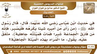 فضيلة الشيخ وفقكم الله في حديث ابن عباس رضي الله عنهما قال قال رسول الله صلى الله عليه وسلم من ومن اميره شيئا يكرهه فليصبر. فانه من فارق الجماعة شبرا فمات فميتته جاهلية. متفق - 00:00:00ضَ