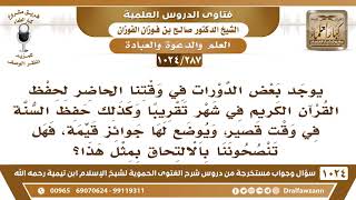 يقول فضيلة الشيخ وفقكم الله يوجد بعض الدورات. نعم. يوجد بعض الدورات في وقتنا الحاضر لحفظ القرآن الكريم في شهر تقريبا وكذلك حفظ السنة في وقت قصير. ويوضع لها جوائز قيمة - 00:00:00ضَ