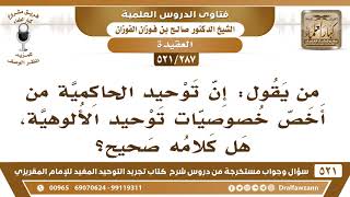 [287 -521] من يقول: إن توحيد الحاكمية من أخص خصوصيات توحيد الألوهية، هل كلامه صحيح؟