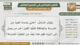 [2927- 4717] أختي تعود من المدرسة في الحافلة وتكون آخر من يصل فهل هذه من الخلوة المحرمة؟