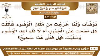 [2942 -3022] بعد أن خرج من مكان الوضوء شك: هل مسح على الجوارب أم لا، فهل يعيد الوضوء؟