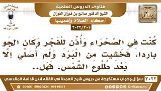 [301 -3022] كنت في الصحراء والجو بارد وأذن للفجر فخشيت من البرد ولم أصلي إلا بعد طلوع الشمس!