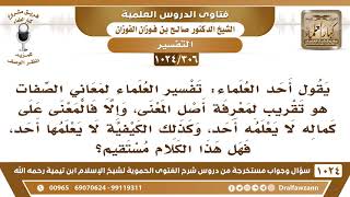 [306 -1024]يقول أحدهم: إن تفسير معاني الصفات هو تقريب لمعرفة المعنى وإلا فالمعنى على كماله غير معلوم