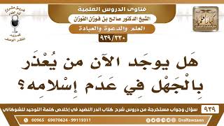 فضيلة الشيخ وفقكم الله يقول هل يوجد الان من يعذر بالجهل في عدم اسلامه الجهل يختلف جهل بالاسلام والعقيدة هذا لا يعذر الا من كان منقطعا عن العالم ولا يصل اليه شيء - 00:00:00ضَ