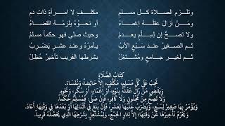 بسم الله الرحمن الرحيم الحمد لله وصلى الله وسلم على نبينا محمد وعلى اله وصحبه اجمعين اما بعد قال الناظم كتاب الصلاة وتلزم الصلاة كل مسلم مكلف امرأة ذات دم - 00:00:00ضَ