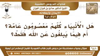 [343 /641] هل الأنبياء كلهم معصومون عامة؟ أم فيما يبلغون عن الله فقط؟ الشيخ صالح الفوزان