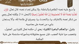 قال رضي من شكر نعمه بالاعتراف بها والتحدث بها. وصرفها في طاعة الله. والا لا يستعان بشيء من نعمه على معاصيه. وقولي والحكم الباهرة الكثيرة يعني ان حكمه تعالى كثيرة تبهر العقول. وتتعجب منها غاية العجب. فان - 00:06:51ضَ