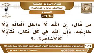 يقول فضيلة الشيخ وفقكم الله من قال ان الله لداخل العالم ولا خارجه وان الله في كل مكان اولا كالاشاعرة ما يقول هذا متأول هذا ما يقوله الا واحد متعمد ما يقوله الا واحد متعمد نعم - 00:00:00ضَ