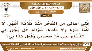 فضيلة الشيخ وفقكم الله يقول السائل يقول انني اعاني من السحر منذ ثلاثة اشهر. لا اهنأ بنوم ولا طعام. سؤاله هل يجوز لي الدعاء على من سحرني وفعل هذا؟ يقول وهل يحل المشكلة؟ ما يحل المشكلة انك - 00:00:00ضَ