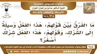 [364 -954] ما الفرق بين قولهم: هذا الفعل وسيلةٌ إلى الشِّرك، وقولهم: هذا الفعل شركٌ أصغر؟