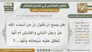 [367- 4717] هل يصح القول بأن من أسماء الله (الباني والفارش) - الشيخ صالح الفوزان