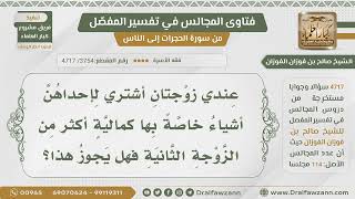 [3754- 4717] هل يجوز شراء أشياء كمالية لإحدى الزوجات خاصة بها أكثر من غيرها ؟ - الشيخ صالح الفوزان