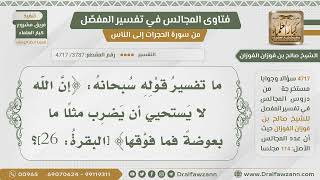 [3787- 4717] ما تفسير قوله تعالى:(إن الله لا يستحيي أن يضرب مثلا ما بعوضة فما فوقها)؟ - صالح الفوزان