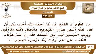 فضيلة الشيخ وفقكم الله. يقول من المعلوم ان الشيخ ابن باز رحمه الله اجاب على ان اهل العلم الذين عذروا القبوريين بالجهل بانهم متأولون ويجب التوضيح لهم. ولكن حفظك الله ان اصر هؤلاء العلماء - 00:00:00ضَ