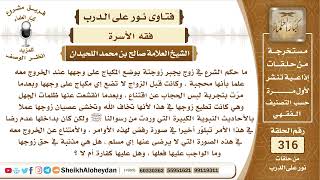 باقناعه بالا يخرجها في حال تمتد اليها انظار الاخرين وتتبعها نظرات المغرضين والاحتجاب امر مطلوب من الشارع درءا للفتن وصيانة للاعراض وحماية للانفس من الوقوع فيما حرم الله والتقية الصالحة - 00:01:50ضَ