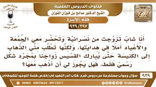 فضيلة الشيخ وفقكم الله يقول السائل يقول انا شاب تزوجت من نصرانية مم وتحضر معي الجمعة والاعياد املا في هدايتها ولكنها تطلب مني الذهاب الى الكنيسة حتى يبارك القسيس زواجنا لمجرد شكل رسمي فقط - 00:00:00ضَ
