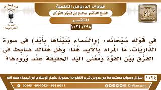 [398 -1024] ما المراد بالأيد في قوله سبحانه: (والسماء بنيناها بأيد)؟ - الشيخ صالح الفوزان